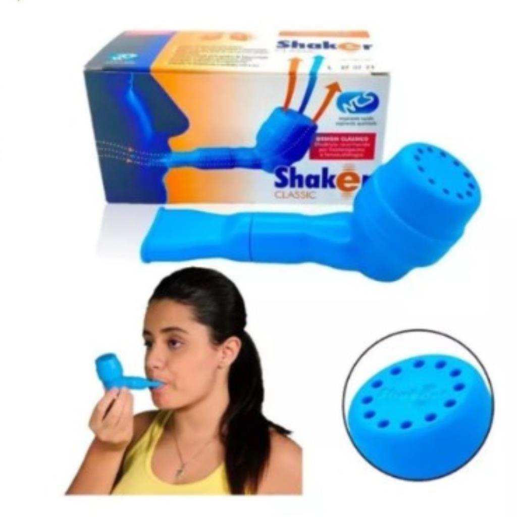 SHAKER é um exercitador respiratório e incentivador da higiene brônquica de oscilação oral de alta frequência.
